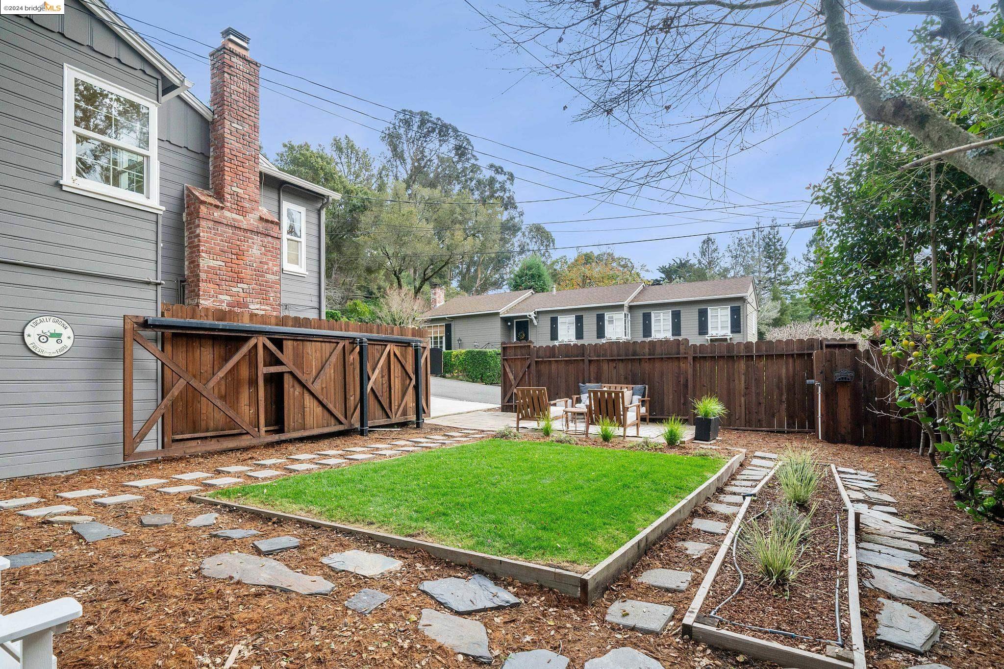 Location! Location! Location! Pristine traditional on friendly private cul-de-sac, just blocks away from the vibrant Montclair Village. This prime location offers convenience and accessibility to trails, dining, schools, farmer's market, and shopping. Step inside and discover a meticulously maintained home featuring three bedrooms and two bathrooms. The spacious floor plan includes a formal dining room and a cozy living room with a fireplace, perfect for gathering with friends and family. The newer galley kitchen is a chef's delight, complete w/modern appliances and ample storage space. It seamlessly opens up to a private outdoor dining area and a beautifully landscaped garden, creating a serene oasis for relaxation and entertainment. Both bathrooms have been tastefully updated with carrera tile, newer vanities, and fixtures. The real laundry room with built-in cabinetry offers convenience and functionality. Outside, you'll find a sunny and spacious side yard, providing ample room for an edible garden, play area, and outdoor entertaining. The oversized sliding barn door allows for easy access and parking of oversized vehicles. With easy access to major transportation routes, including a short commute to San Francisco!